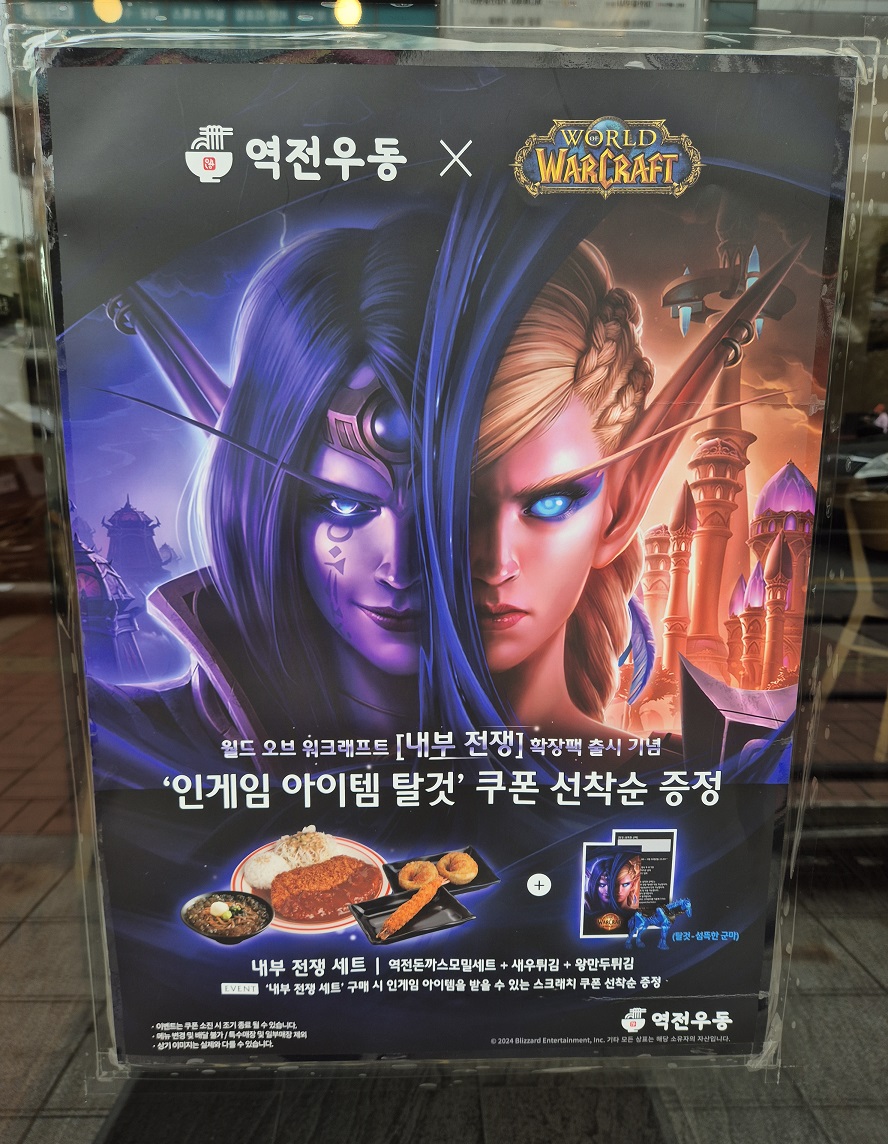 와우 커뮤니티를 보다 내부 전쟁 출시 기념으로 블리자드와 역전우동이 컬래버레이션을 한다는 걸 알게 돼서 주변 역전우동에 방문해서 행사 상품을 구매해봤습니다.