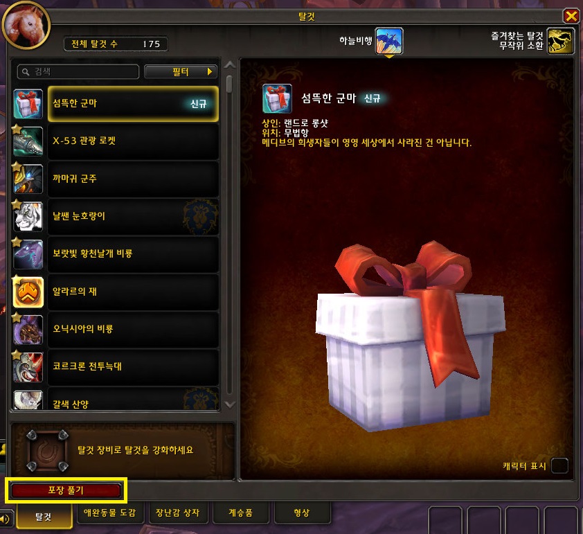 포장을 푼 스샷입니다.