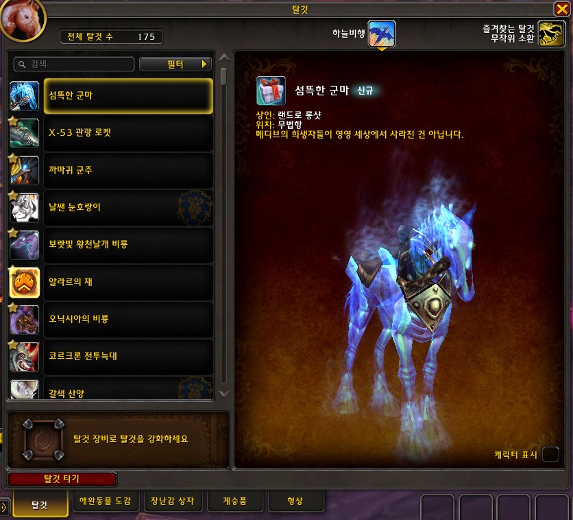 섬뜩한 군마에 탑승한 스샷입니다.