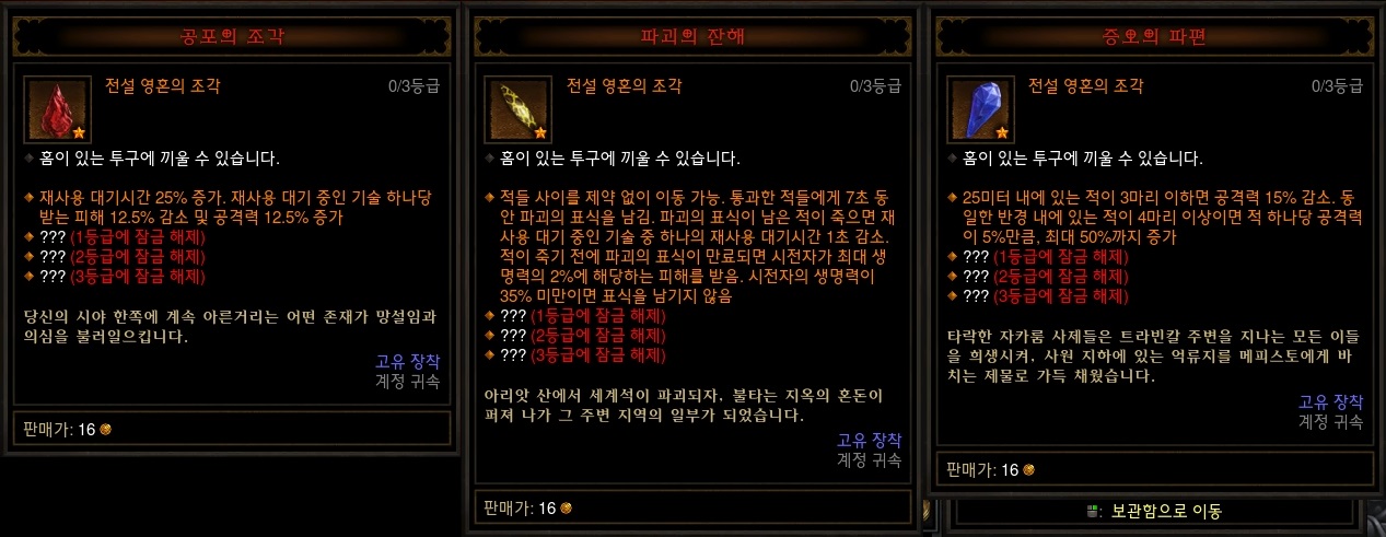 △ 인벤 - 영혼의 조각 등급별 능력
