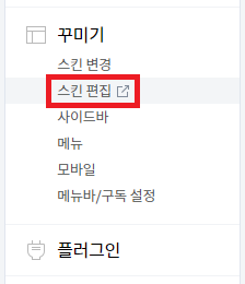 티스토리 관리자 페이지에서 꾸미기 -> 스킨 편집으로 이동합니다.